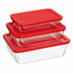 - In three versatile sizes, these rectangular glass dishes and lids make it easy to store food or pack meals to go.